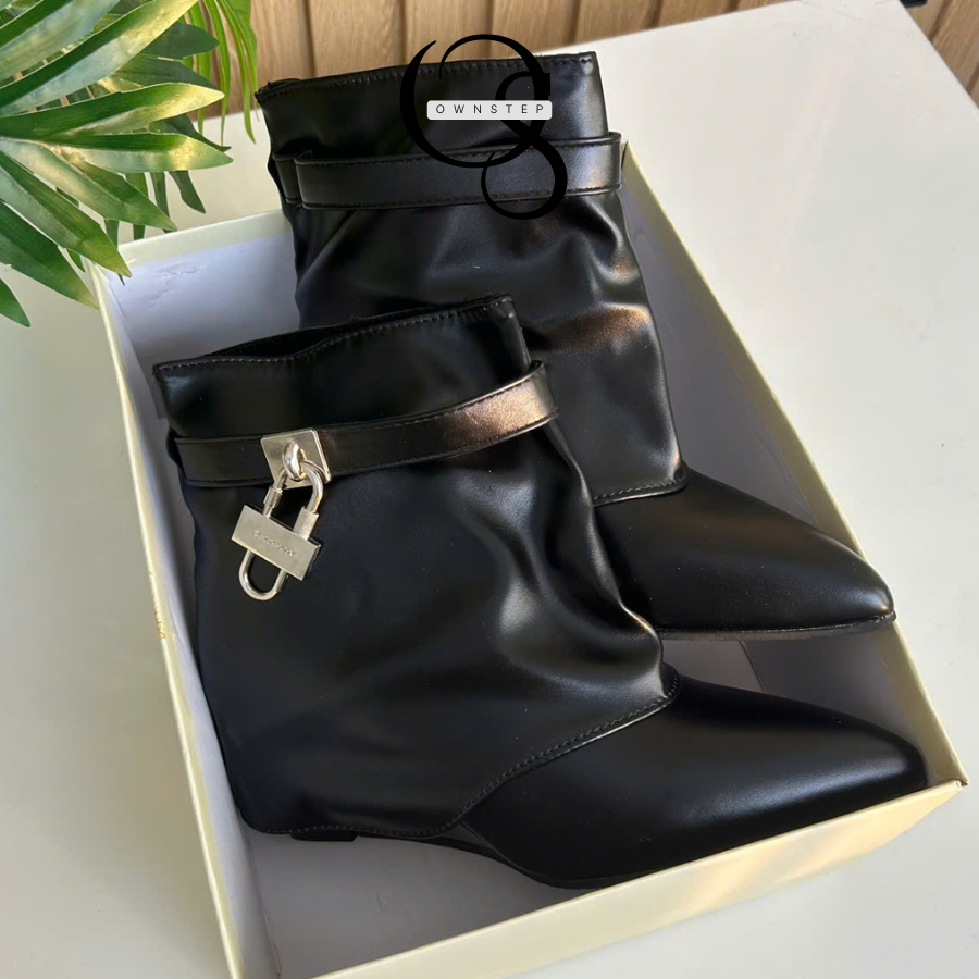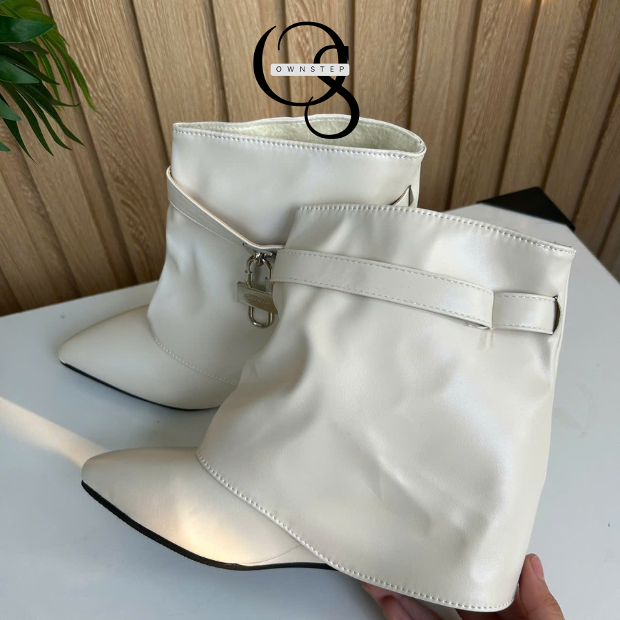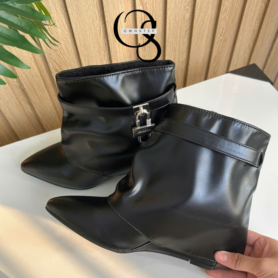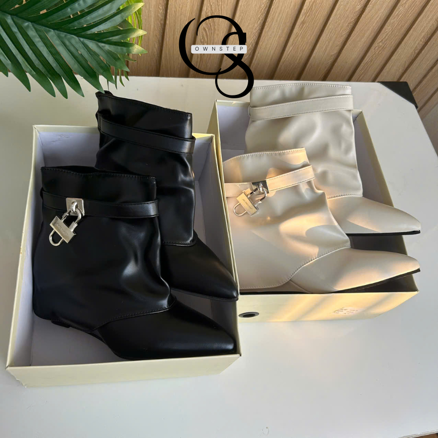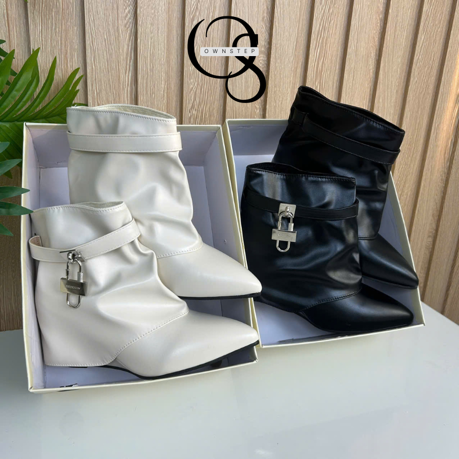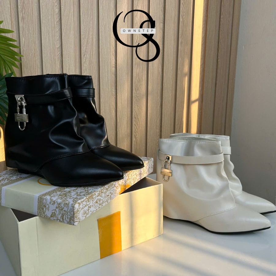 1.Bốt Nữ Cổ Lửng Phối Khoá Đế Cao – Hàng QCCC Full Box