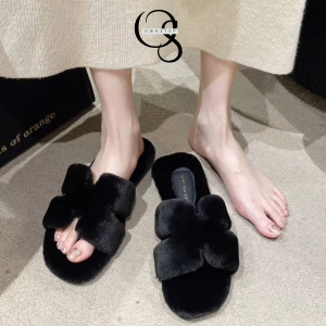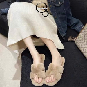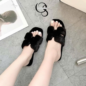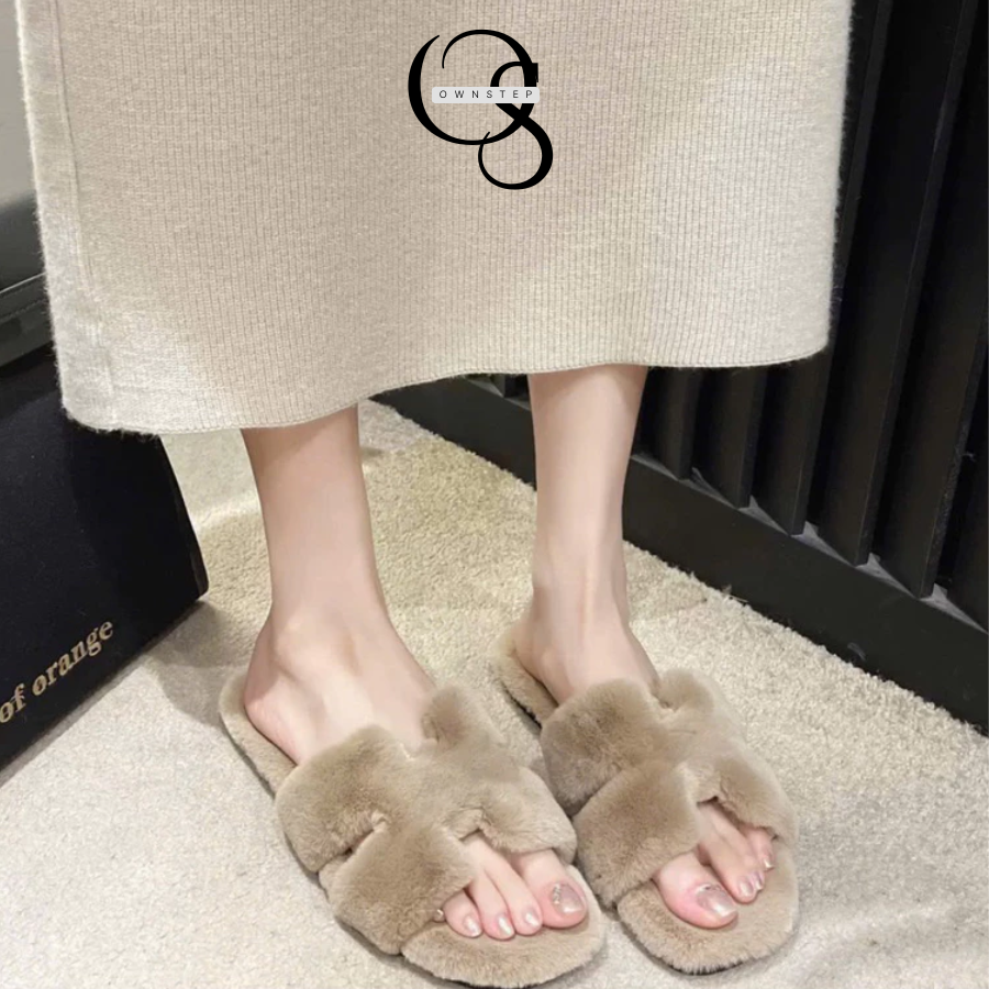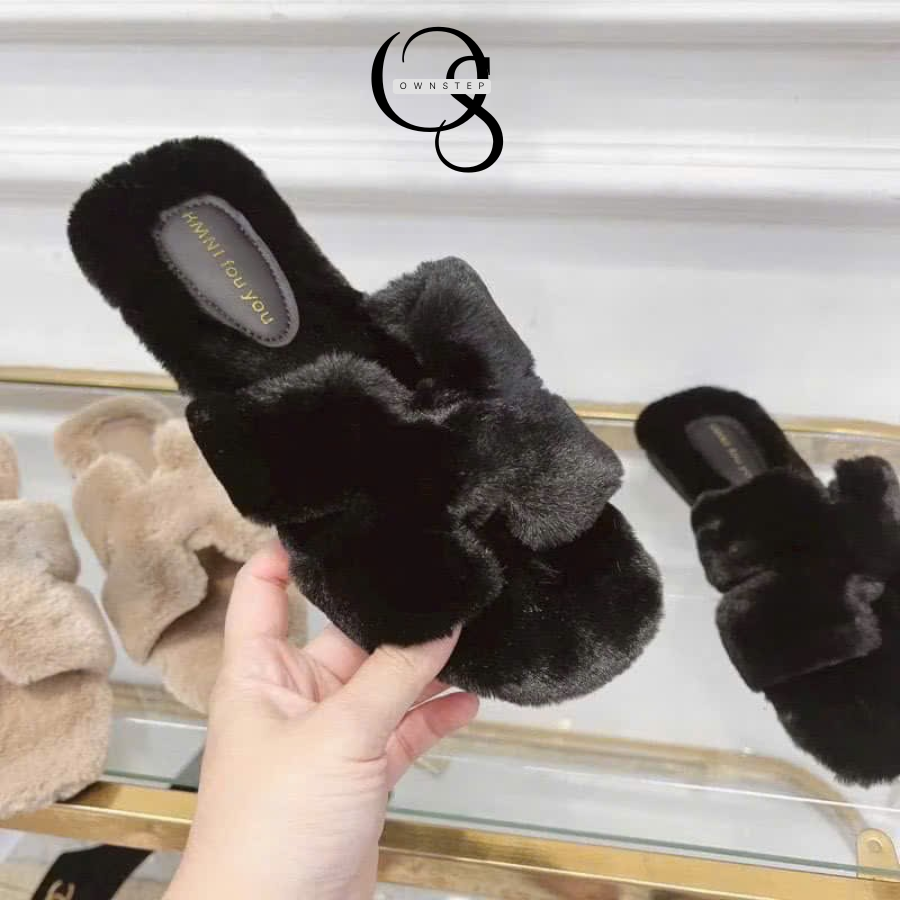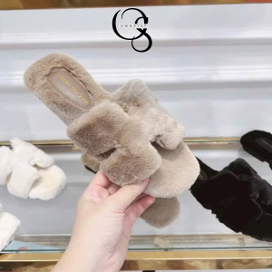 Dép lông chữ H nữ QCCC FULLBOX, lót lông êm ái, giữ ấm tốt phù hợp cho Thu Đông