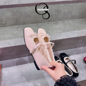 1. Tên sản phẩm: Giày Búp Bê Nữ Bệt Mũi Tròn Đế Vuông Phối Ren, Phong Cách Lolita Nữ Tính