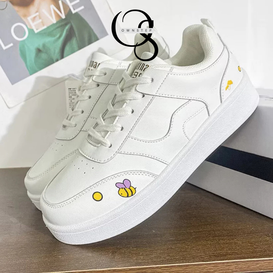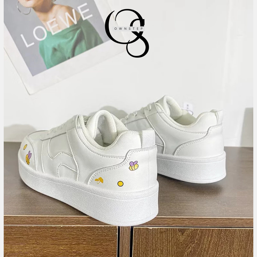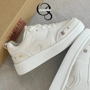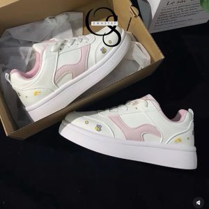 1.Đôi giày này thuộc dòng sneaker nữ phong cách dễ thương, với thiết kế đế bằng mang lại cảm giác thoải mái khi đi bộ.