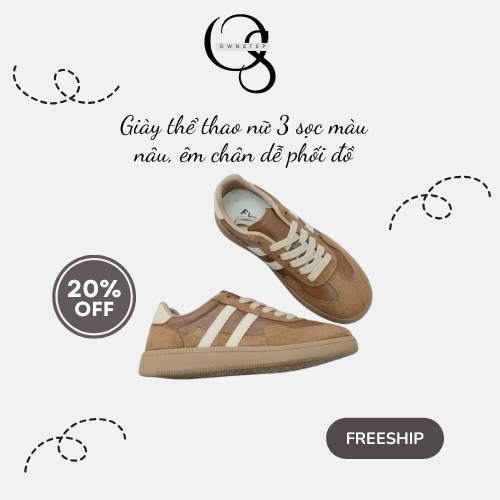 ![[OWNSTEP]Giày thể thao nữ 3 sọc màu nâu, êm chân dễ phối đồ,form chuẩn phong cách Hàn Quốc nhẹ nhàng - Ảnh 2](https://ownstep.vn/wp-content/uploads/2026/01/3-1.png)